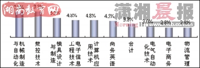 湖南省2008届高职高专毕业生失业人数最多的前10位专业
