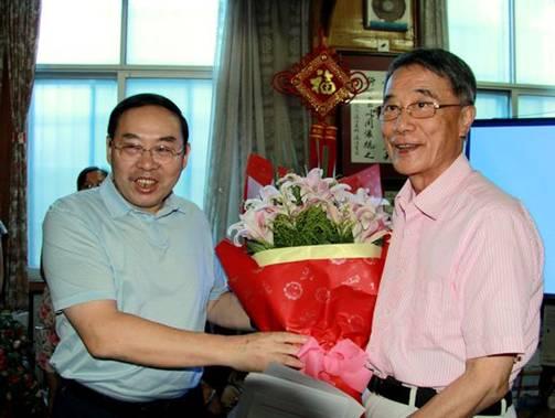 省委副书记梅克保为中南大学何继善院士送上鲜花和节日的慰问。