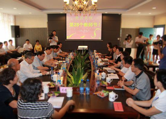 梅克保一行与岳麓区的中小学幼儿园优秀教师代表亲切座谈,问计基础教育改革发展,省教育厅厅长王柯敏主持座谈会。