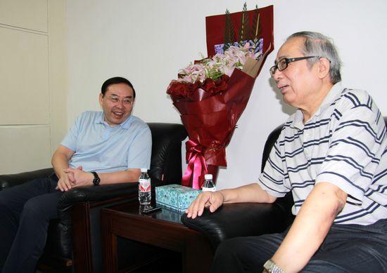 随后,梅克保一行又来到湖南大学化工学院看望慰问俞汝勤院士,俞汝勤院士是千年学府的一根标杆,由他主持的“化学生物传感与计量学国家重点实验室”是国内唯一。比肩而坐后,梅克保对77岁的俞汝勤院士嘘寒问暖:您老最近身体感觉还好吧?眼睛手术后恢复的怎么样?经常锻炼吗?当一旁的湖南大学党委书记刘克利介绍说老院士经常打太极拳、喜欢驾驶小车外出,并对青年教师培养孜孜不倦、门下弟子俊杰辈出时,梅克保对俞汝勤院士健康、快乐、有为的老年生活表示了由衷称赞。“身体第一,健康第一,在湘的两院院士们,是湖南的宝贵财富,俞老您重视后备人才的培养,就是为湖南当下大力实施的‘四化两型’建设输送优秀人才,今后,您有什么重大的课题,有什么重大的科研项目,都可以随时找我,我为您全力做好服务!”说话间,两人紧握住彼此的手、相牵着一直从三楼走到院子里,依依相别。
