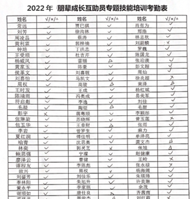 附件1:2022年朋辈互助成长员专题技能培训考勤表