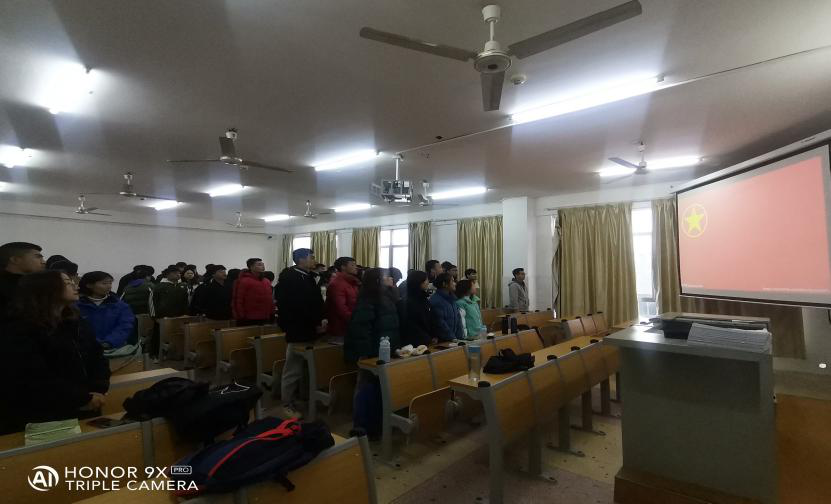 通过学习习近平总书记重要讲话精神,体育学院在校级指示下,严谨的开展了这次活动。2019级体育教育二班的同学齐唱国歌为学宪法、讲宪法营造庄严、尊敬的态度引领同学们走进这次班会。