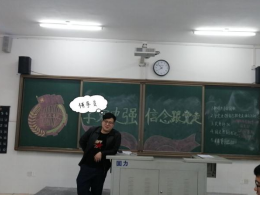 团支书带领宣传委员、文娱委员提前来到教室,绘制黑板报,试播放ppt、视频等准备工作