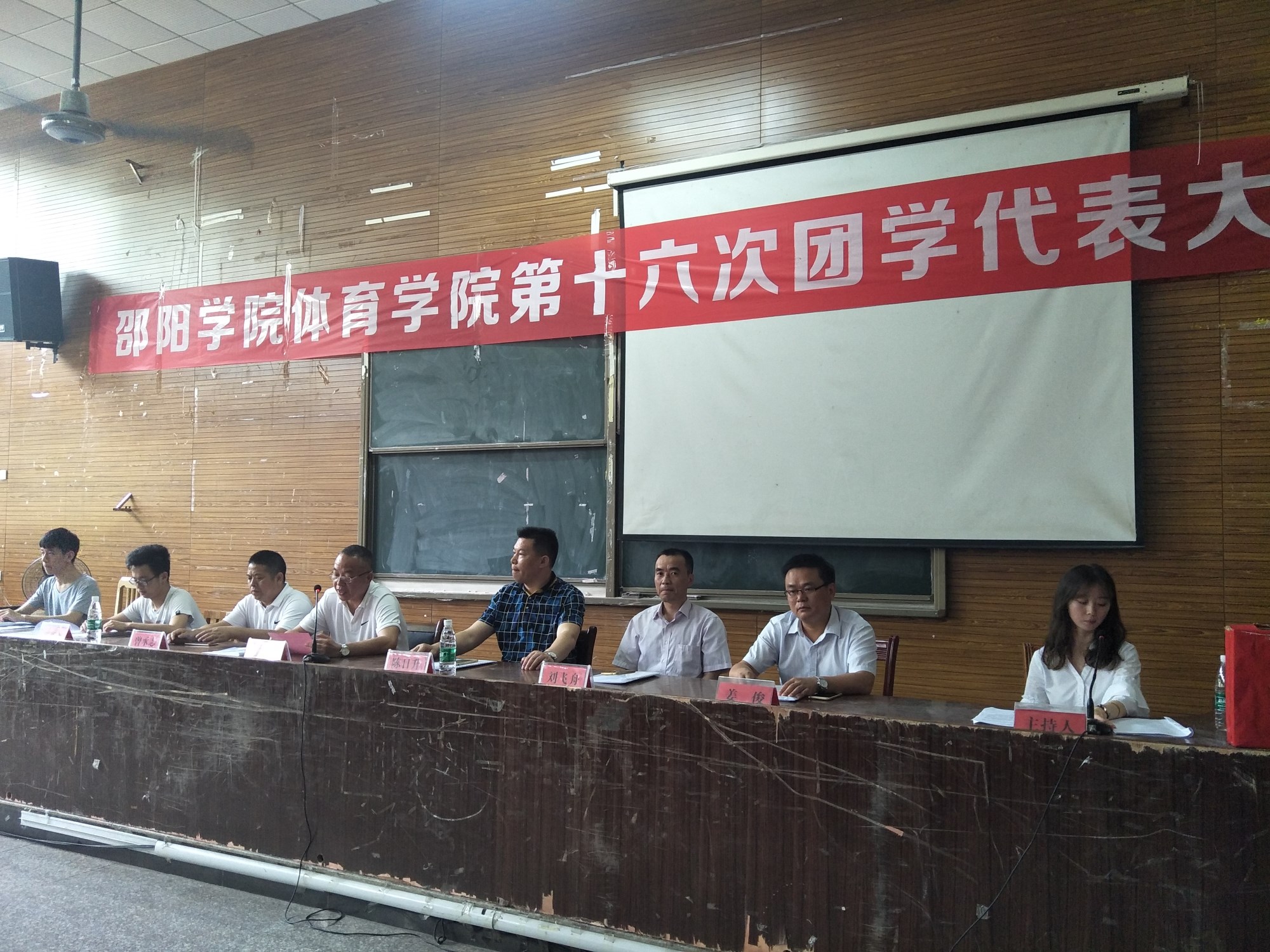2018年5月19日上午8:00,我院在医学院梅子井校区107阶梯会议室召开了共青团邵阳学院体育学院第十六次代表大会和体育学院第十六次学生代表大会。出席本次会议的领导有体育学院院长陈日升、院党总支书记赵俊、副院长曾承志、刘飞舟和党总支副书记、副院长姜俊。出席本次会议的嘉宾有校团委副书记罗智尧、校学生会副主席郭庆如以及体育学院各年级辅导员和全院各年级151名正式代表。
