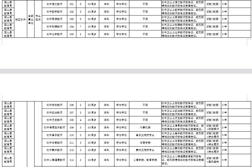 湖南省永州市蓝山县2023年招聘初中有编制的教师,招聘初中语文教师,初中数学教师,初中英语教师,初中物理教师等其他学科的教师,招聘要求年龄,学历,学位限制,没有专业要求,报名时间6月12-17日!