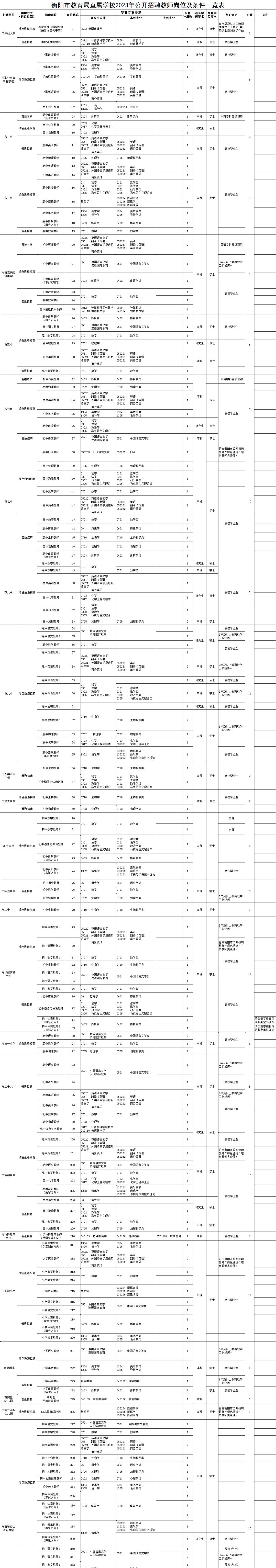 2023衡阳市直教师招聘考试,各个岗位汇总,此次招聘方式分为普通招聘,绿色通道招聘,招聘方式不同,招聘要求也不同,具体的招聘要求详见表格!