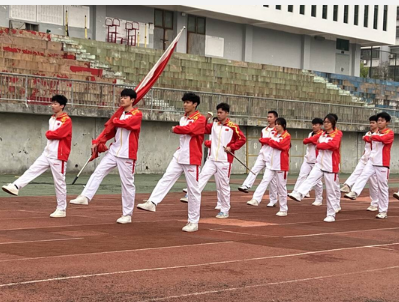 英姿飒爽的仪仗队迈着整齐有力的步伐,护送五星红旗走向升旗台。国歌响起,鲜艳的五星红旗在全体师生的注目礼中缓缓升起,迎风飘扬。这一刻,现场气氛庄严肃穆,师生们心怀敬意,齐声高唱国歌,爱国之情在每个人心中油然而生。