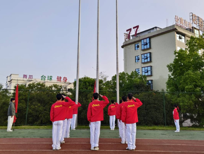 清晨,天刚蒙蒙亮,初春寒风依旧凛冽。2025年4月14日早上6点体育学院党总支副书记副院长姜俊、2021级辅导员罗旺、2023级辅导员禹航、2024级辅导员龚鹰、2022级辅导员罗雨婷以及体育学院全体同学齐聚新操场,举行每周一次的升旗仪式。在激昂的音乐声中,同学们身姿挺拔,精神抖擞。旗手们迈着整齐有力的步伐护送国旗走向升旗台,动作娴熟利落地将国旗挂好。随着激昂的国歌声响起,旗手缓缓拉动绳索,国旗在寒风中舒展飘扬,在全体师生庄重的注目礼下,一寸一寸稳稳上升至杆顶 。