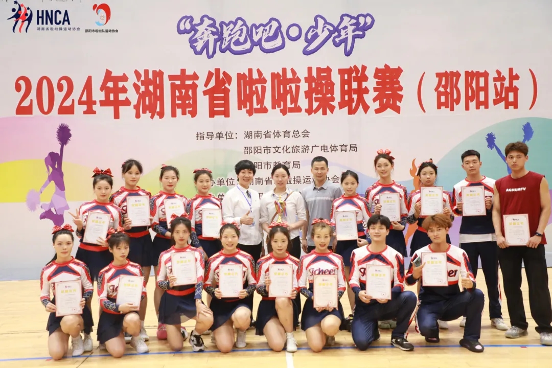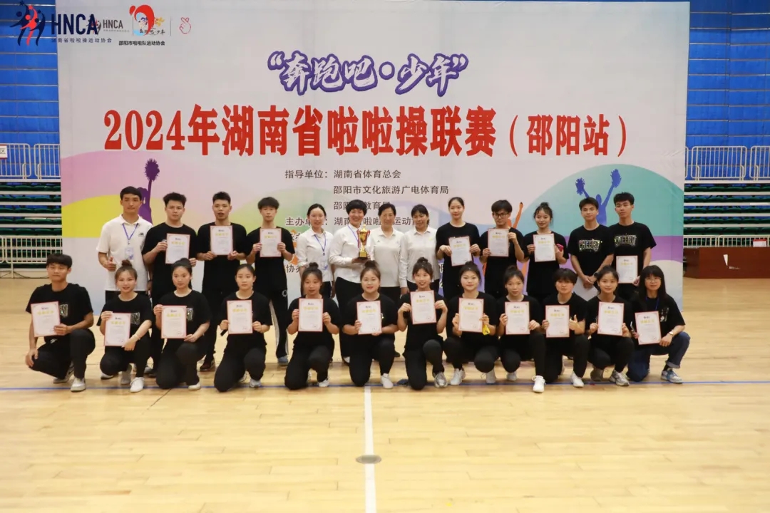 2024年湖南省啦啦操联赛(邵阳站)于5月25日在邵阳市全民健身中心体育馆胜利闭幕。我校“梦之队”啦啦操协会选派7支队伍参加本次比赛,斩获七个第一名的好成绩!