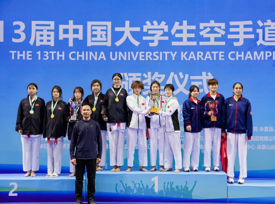 11月24日至11月28日,第13届中国大学生空手道锦比赛在浙江永嘉举行。我校空手道队与来自全国78所高校,近800人参赛,通过队员们顽强拼搏、不畏强敌,最终斩获3金1银1铜及3个第五名的优异成绩,在参赛高校中名列前茅。