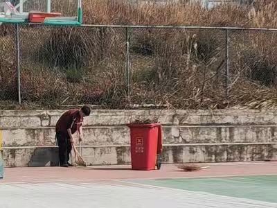 学生们分组手持扫帚、拖把等工具,认真清扫篮球场,展现了十足的干劲和默契的团队精神。通过亲身劳动,他们不仅提升了动手能力,还增强了对公共环境的责任感。