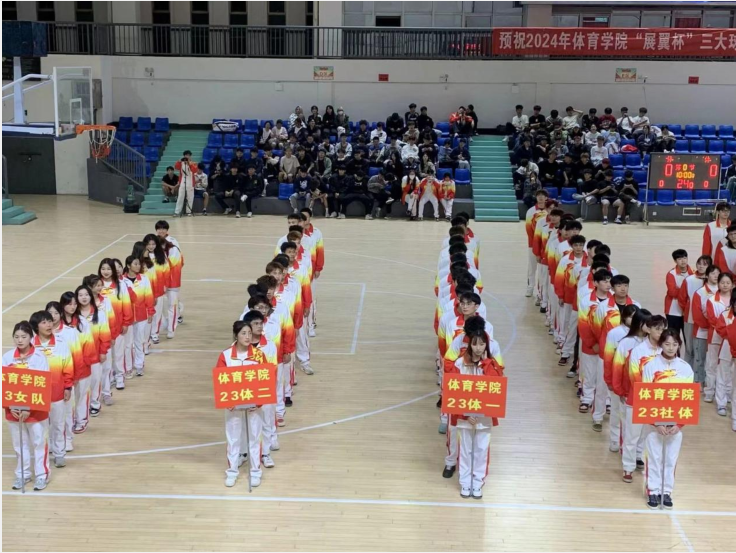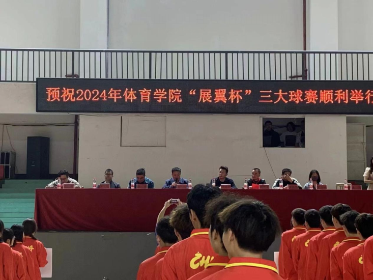为增强我院球类运动的竞技水平,提高大学生的身体素质与文化修养,进一步丰富大学校园生活,体育学院于2024年4月8日晚七点在体育教学中心综合馆举行2024年“展翼杯”三大球赛开幕式。体育学院院长陈日升、体育学院副院长刘飞舟、体育学院党总支副书记副院长姜俊、三位篮球指导老师、各年级辅导员以及体育学院全体学生参加本次“展翼杯”开幕式。本次开幕式由22级体育教育一班李文涛和23级体育教育二班何映彤主持。