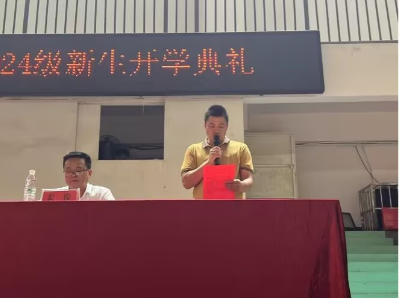 大会进行第六项:新生代表发言,学生代表24级社会体育指导与管理专业的大一新生孔雀同学在发言中对同学们提出几点建议:1、珍惜时光,勤奋学习。2、积极参与社会实践和志愿服务活动3、培养兴趣爱好和特长。4、保持积极乐观的心态。