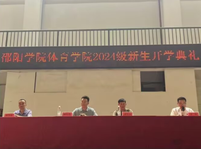 2024年9月26日晚18点30分,邵阳学院体育学院举行2024级新生开学典礼。体育学院党总支书记刘平宇、体育学院院长陈日升、体育学院副院长刘飞舟、体育学院党总支副书记姜俊和各年级辅导员以及全体大一新生和老师们到场参加大会,由体育学院党总支副书记姜俊主持。