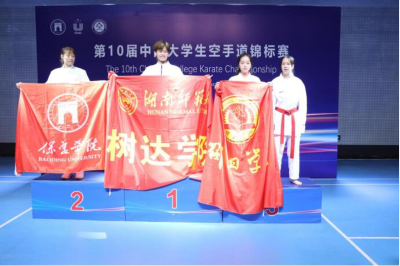 由中国大学生体育协会主办,保定学院承办的第10届中国大学生空手道锦标赛于2023年5月28日至30日在河北省保定学院举行。共有来自同济大学、北京体育大学、中国人民公安大学、上海理工大学、湖南师范大学等59所高校的运动员参赛。中国大学生空手道锦标赛是中国大学生最高体育赛事之一,参与高校多、影响辐射广。邵阳学院派出以体育学院党总支副书记姜俊为领队,唐烁霖、罗旺为教练员以及5名(3男2女)运动员组成的代表队参加本次比赛这是我校第一次组队参加全国性单项体育比赛,在比赛中,我校空手道队秉持着“明德、求真、共生、超越”的校训,顽强拼搏,不畏强敌,在比赛中勇夺勇夺佳绩。其中:王兴国获得男子个人组手第一名,郑笑笑获得男子个人组手第二名,周小涛获得女子个人组手第三名,谢丽敏获得女子个人组手第五名,王培获得男子个人组手第七名,女子团体(周小涛、谢丽敏)获得第三名,男子团体(郑笑笑、王兴国、王培)获第五名。在这成绩的背后离不开队员们平日里的刻苦训练和领队教练的悉心指导与栽培,离不开学院主要领导的高度重视,更离不开学校领导、教务处等部门的大力支持。