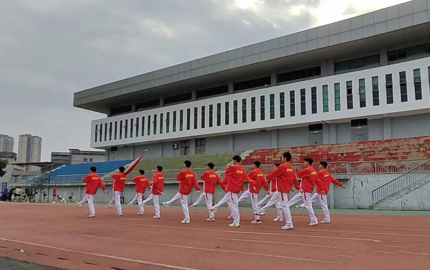 体育学院于每周一早晨举行升旗,仪仗队准时出旗,全体师生在国旗下唱国歌行注目礼,来增强体育学子的爱国热情。发扬体育人的爱国主义和拼搏奋斗的精神,谱写新时代新华章。